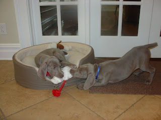 We moved the pups inside to cool off in the air conditioning and Monty showed off his kitchen/play area.